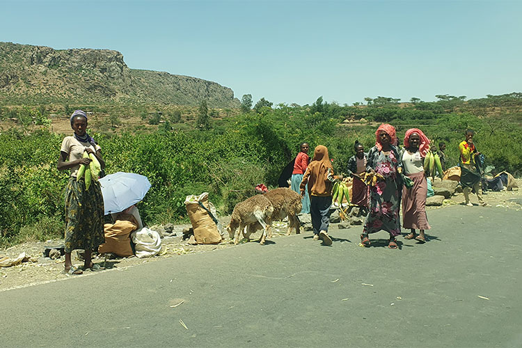 Sarayın yanından sanki sonsuzluğa giden sarı toprak bir yol var. Yerel halktan insanlar, bazıları çocuk, ellerinde eşyaları ile bu toprak yoldan ileriye doğru yürüyorlar. Meğer buradan yaya olarak Eritre’ye gidiyorlarmış. Sınır yaklaşık 25-30 km ilerde deniyor. Eritre günümüzde dünyanın en tehlikeli bölgelerinden bir tanesi. Lakabı “Afrika’nın Kuzey Koresi” olarak geçiyor. Özellikle sınıra yakın bölgelerde kesinlikle yaya olarak geçilmemesi konusunda uyarılar var. Zira her yerde mayınlı bölgeler bulunuyor. Hatta Eritre’ye nereden olursa olsun karadan değil havadan giriş yapılması öneriliyor. Yolda yürüyen insanların silüetleri ufuk çizgisinde tozun dumanın içinde yavaş yavaş kayboluyor. Umarım gidecekleri yere sağ salim ulaşırlar.