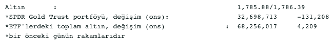 Altının spot piyasadaki ons fiyatı 1,797.75 dolar ile 25 Şubat'tan bu yana gördüğü en yüksek seviyeyi gördükten sonra %0.2 gerileyerek 1,788.89 dolar seviyesine indi.