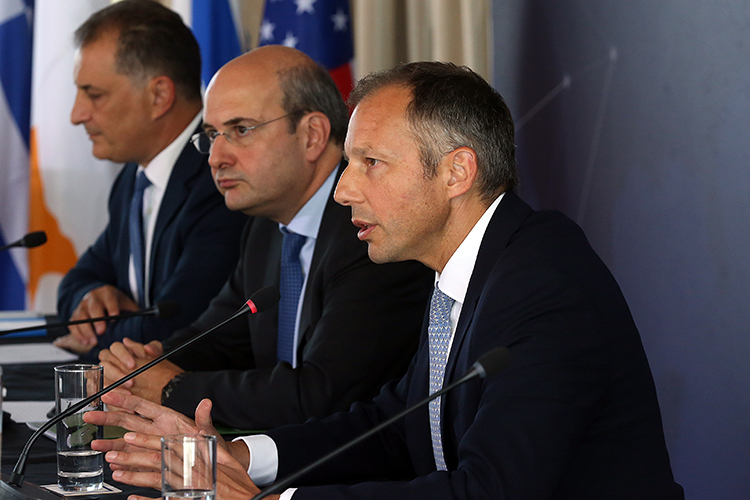 Yunanistan Çevre ve Enerji Bakanı Kostis Hacidakis: "East-Med'e (Doğu Akdeniz Boru Hattı Projesi) ilişkin çalışmaların hızlandırılmasını kararlaştırdık. Bizim için bu bir öncelik. İtalya ile de iş birliğini sağlayarak en kısa sürede ilerlemeyi planlıyoruz. Enerji kaynaklarından sorumlu ABD Dışişleri Bakan Yardımcısı Francis Fannon: "ABD bu üçlü yapının güçlü bir ortağı". İsrail Enerji Bakanı Yuval Steinitz: "İsrail gazı yaklaşık bir ay içinde Mısır'a ihraç edilecek. Bu doğal gazın bir kısmı da Mısır'daki enerji tesislerinden Avrupa'ya gönderilecek"