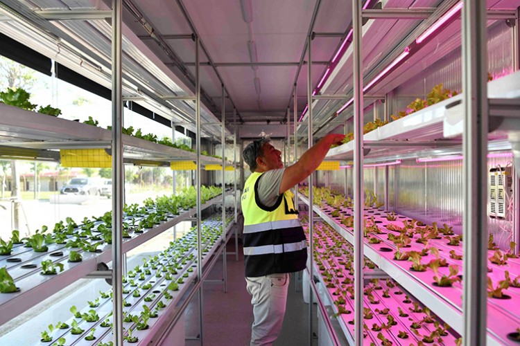 Kabinlerde bütün yeşil ürün gruplarının, bazı tıbbi bitkilerin ve çilek yetiştiriciliğinin yapılabildiğini kaydeden İrem Ermiş, sistemin avantajlarını şöyle anlattı: “Dikim, hasat ve bazı küçük bakım işlemleri dışlında personel dâhil etmiyoruz. Bitki çeşidine bağlı olarak 1800 ile 2 bin 600 adet bitki yetiştirebiliyoruz. Kapalı ve kontrollü bir alan olduğu için iklimsel faktörlerden ve zararlı kimyasal etkilerden uzak bir yetiştiricilik imkânı sunuyor. İklim krizi ve kuraklık düşünüldüğünde de topraksız tarım da bize avantaj sağlıyor. Sistemde sadece su ve mikro element kullanıldığı için kimyasal kalıntılar sistemde olmuyor. Sistemler dikey ve katlı olduğu oldukları için aynı alanda minimum 3 kat daha fazla mahsul yetiştiriciliği yapılabiliyor. Özel ışıklarla bitkinin güneşlenme süresi kademeli ve kontrollü olarak artırılabiliyor ve bu erkenci hasat imkânı sağlıyor. Marulu tarlada 45-55 günde hasat edebilirken burada 30 günde hasat edilerek pazara sunulabiliyor. Sistemle gıdaya erişimdeki ve yetiştiricilikteki riskleri teknoloji ile aşmaya çalışıyoruz.” açıklamasında bulundu.