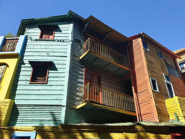 Biraz ilerde ise bir anda karşımıza sarı, mavi, yeşil ve kırmızı renkte La Boca semtinin karakteristik rengarenk şirin evleri çıkıyor ve içimizi bir neşe kaplıyor.