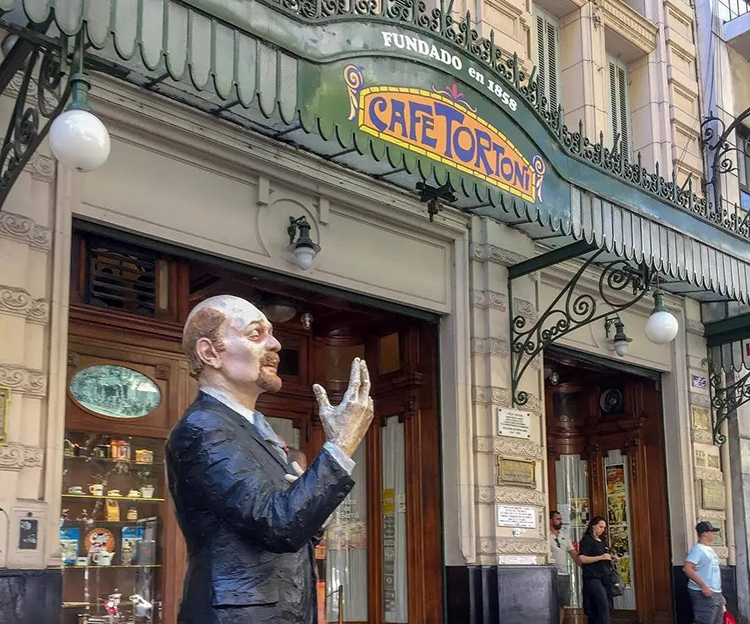 En başta Mayo Meydanı’na çok yakın 1858 yılında yapılmış Café Tortoni’ye girmek için sıraya giriyoruz.Içerde birer yerel kahve içerek mutlaka Café Tortoni’nin ambiyansını yaşamak istiyoruz.İçerisi gerçekten çok şık.