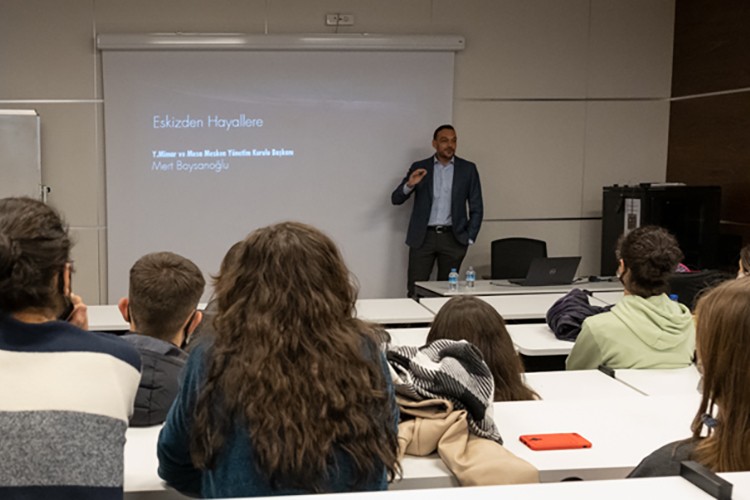 “Eskizden Geleceğe” teması ile gerçekleştirilen buluşmada Mert Boysanoğlu, kendi mimarlık kariyerinden bahsetti, ardından bir projenin en başından en sonuna kadar nasıl işlendiğini tüm detaylarıyla genç mimar adayları ile paylaştı. MESA’nın önemli projelerinden biri olan MESA Orman örneği üzerinden ise bir projenin tüm iş geliştirme süreçlerini aktardıktan ve konut mimarisinin geleceğinden bahsettikten sonra üniversitelilerden gelen soruları yanıtladı.