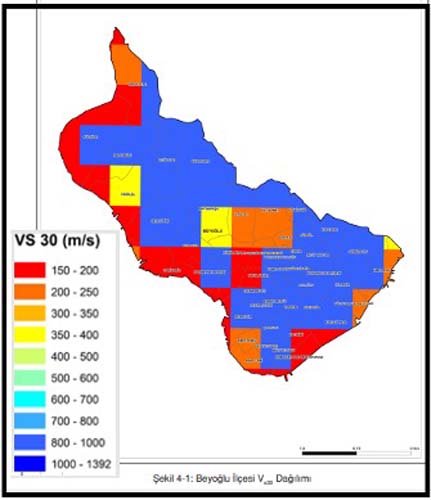 %10’unda ise Vs30=300-400 m/sn. arasında ölçüldüğünü söyleyebiliriz.