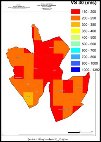 Vs30 kayma dalgası hızlarına göre ilçenin tamamını incelediğimde,150-350 m/sn. hızların hakim olduğunu ve zeminin orta altı kötü olduğunu söyleyebilirim.