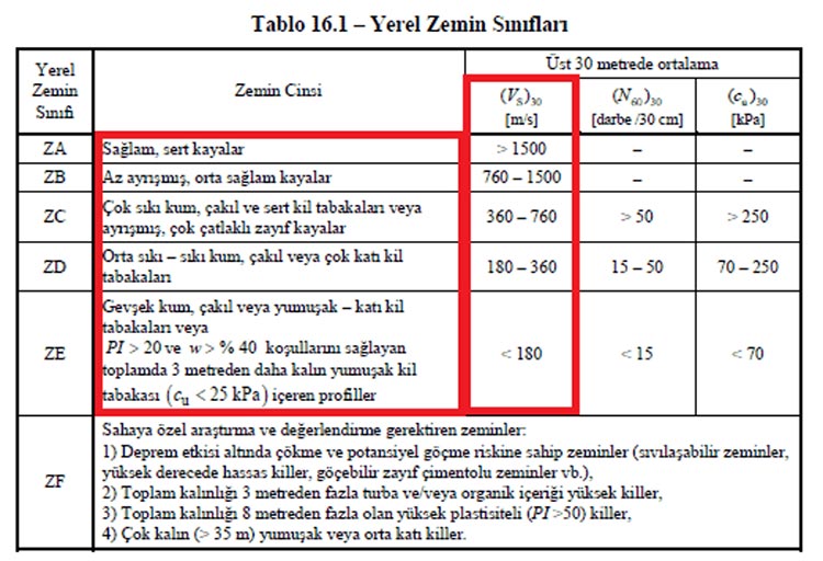 TBDY-2018’e göre , Vs30 ≥ 760 m/s. ise zemin mühendislik açıdan kaya olarak kabul edilir.
