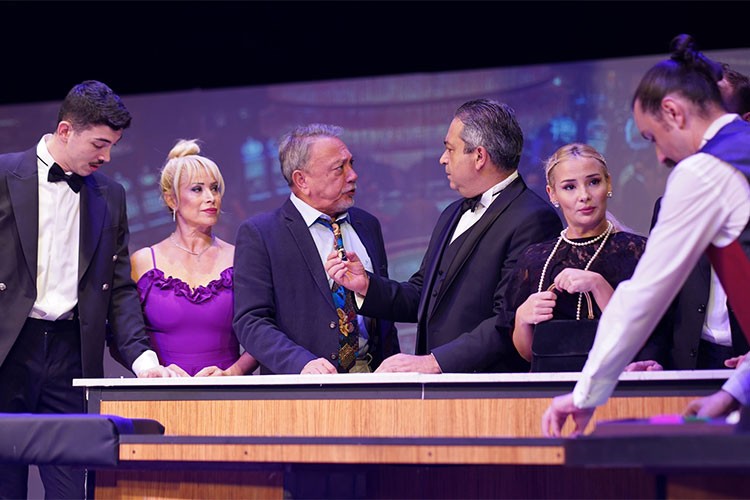 Tiyatro Ak’la Kara, yenilikçi projeleriyle bu sezonda da fark yaratmaya devam ediyor. “Düzenbazlar”, sadece komedi unsurlarıyla değil, görsel detaylarıyla da izleyiciyi büyülüyor. 6 kişilik dans ekibiyle sahnelenen Broadway tarzı koreografiler ve dinamik ışık şovları, hikayeye eşsiz bir tempo katıyor. Hızla değişen sahne efektleriyle, seyirci kendini dolandırıcılıkla dolu bu hikayenin tam ortasında bulacak. Işık şovları ve danslar, oyun boyunca görsel bir ziyafet sunarken, seyircileri adeta başka bir dünyaya götürüyor.