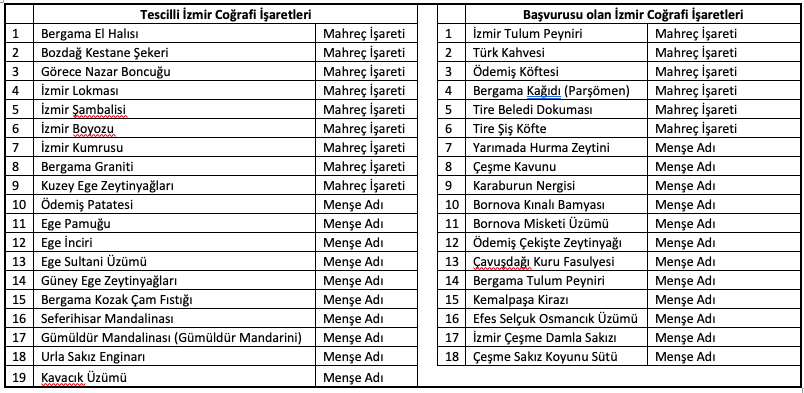Özetle, yukarıda saydığım İzmir’in lezzetleri bu kadar değil elbette, belki hiç duymadığınız yemekler veya otlar var bu bölgede. Sarmaşık, su teresi, kenger, stifno, cibez, hindibağ, turp otu, kipohorta, ısırgan ve daha sayamadığımız çeşit çeşit, sağlıklı, mis gibi doğal otlar burada yetişmekte ve harika yemekleri yapılmaktadır. Ayrıca pancar otu, turp otu, ısırgan otu, radika, cibes, gibi otlardan yapılma kekler, börekler, poğaçalar, gözlemeler ve hatta karışık otlu ev baklavaları bile vardır. Ayrıca alt tarafta coğrafi işaret tescili alınmış veya başvurusu yapılmış onlarca ürün bulunmaktadır. Yani İzmir’i ve mutfağını anlatmak öyle birkaç sayfaya sığmıyor.
