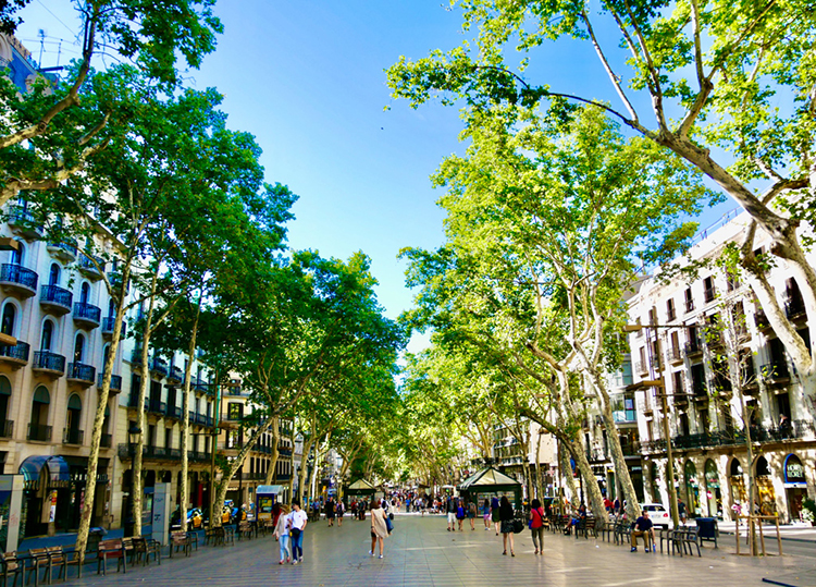 La Ramblas dükkanları, pasajları ve harika ağaçları ile güzelliğini koruyan bir yürüyüş ve alış veriş caddesi olarak yeni kış sezonuna başlamış dükkan vitrinlerini görebilirsiniz.