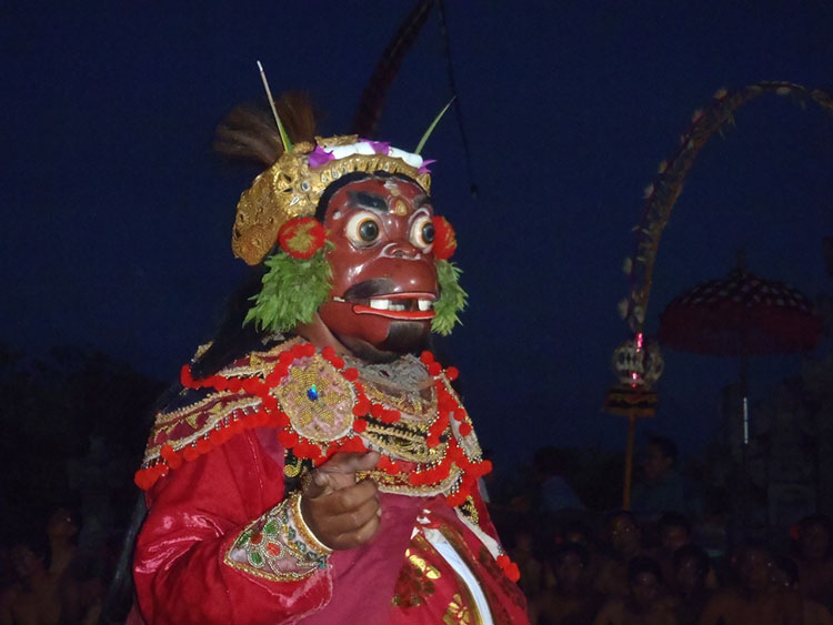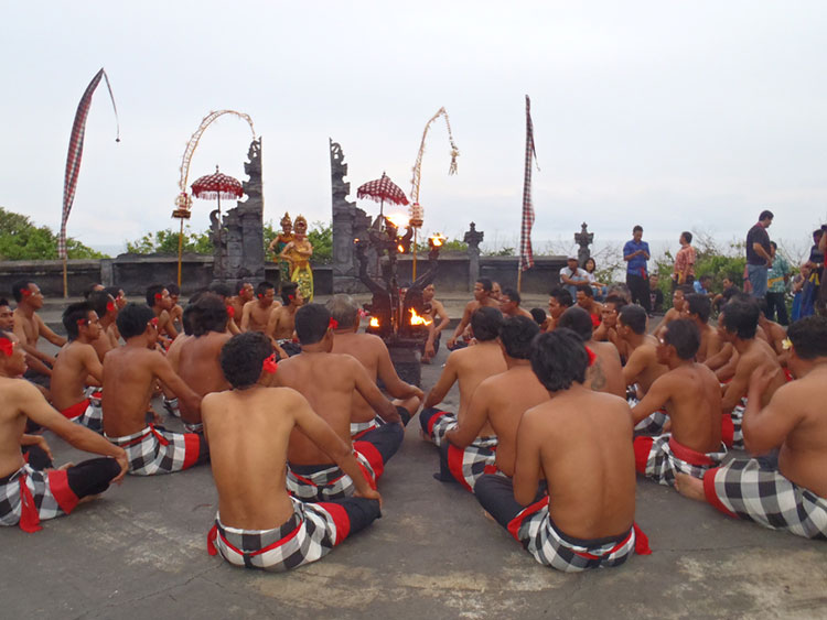 Bunlardan bir tanesi deniz kenarında kayaların tepesinde bulunan ve Maymunlar Tapınağı diye de geçen olağanüstü Uluwatu Tapınağı. Maymunların hakim olduğu bir ormanın içinden tapınağa yürüyorsunuz ve her gün gün batımında başlayarak bu harika panoramada yerel erkek dansçılar siyah beyaz kareli etekleriyle Keçak dansı yapıp daha sonra sahneyi gecenin bir vaktine kadar Ramayana Destanı’nı anlatan zarif Prenses Sita ve Prens Rama’yı simgeleyen dansçılara bırakıyor.