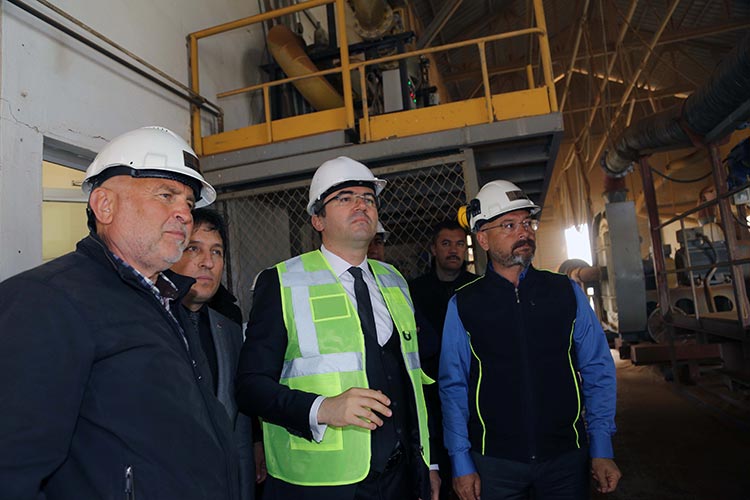 Fabrika müdürü Hüseyin Genç ve işletme sahibi Salih Cihan'dan yaptıkları çalışmalar hakkında bilgi alan Memiş, daha sonra baret takıp fabrikayı ve maden ocağını inceledi.