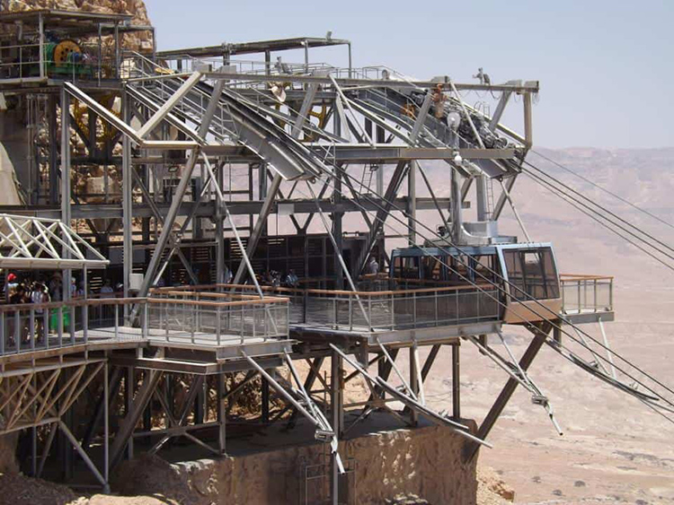 Havanın sıcaklığından ve vaktimizin biraz kısıtlı olmasından dolayı biz kayalıklara çıkan büyük teleferiği tercih etmek durumdayız . Tepeye çıkınca inanılmaz bir manzara bizi bekliyor . 360 derece bütün çevreyi görebiliyoruz. Bir yandan kızıl kayalardan oluşan dağlar , diğer yandan uçsuz bucaksız kocaman sapsarı renkte bir çöl ve karşıda masmavi ince uzun bir deniz şeridi.
