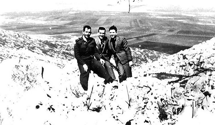 Kemal Emin Sâbit ve beraberindeki Suriyeli askerî yetkililer, Golan Tepeleri'nde. Arkada Suriye toprakları uzanıyor
