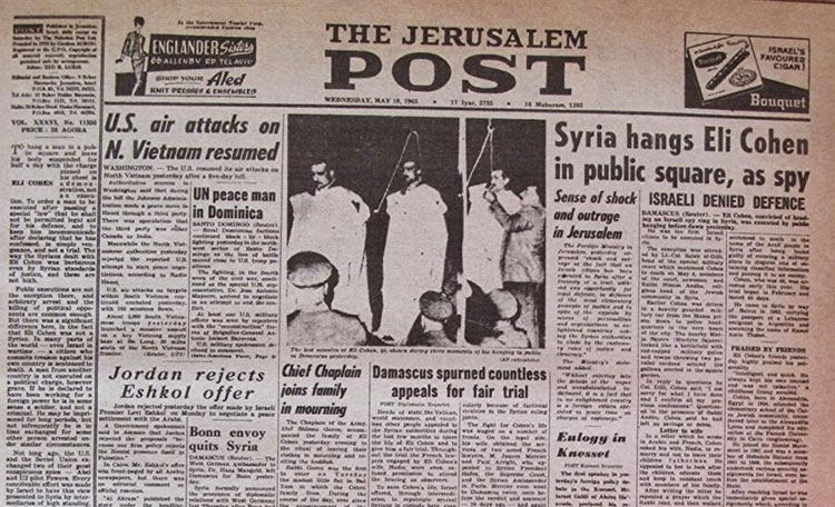 Jerusalem Post gazetesinin Eli Cohen'in idamını duyuran manşeti.