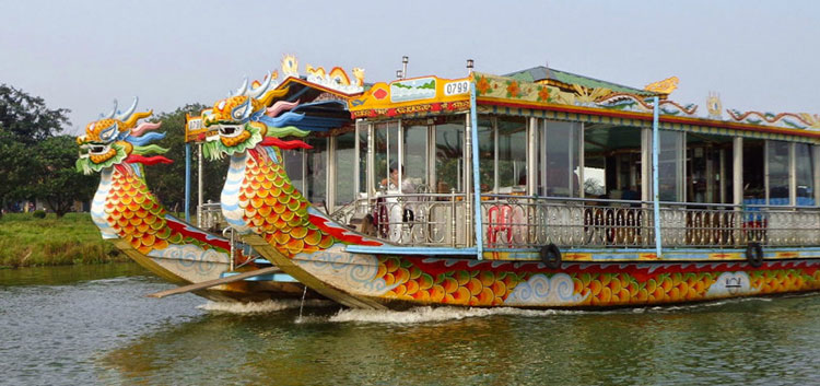 Sabah kalktığımızda kahvaltımızı yapıp, bahçemizde nehir kenarında çaylarımızı içtikten sonra hemen yakınımızdaki iskeleye gidiyoruz. Buradan rengarenk geleneksel ve süslü ejderha teknelerimize binip Vietnam’ın eski imparatorluk başkenti Hue’ye, kale içine gidiyoruz. Hue kenti 1802 – 1945 yılları arasında son Vietnam Ngyuen Hanedanlığı’nın 13 kralına ev sahipliği yapmış bir kent. Bu harika Ekim sabahında bu güzel nehirin üzerinde sakin sakin yol alıyoruz. Nehir kenarındaki ağaçlar çok güzel, ortam çok sessiz ve huzurlu.