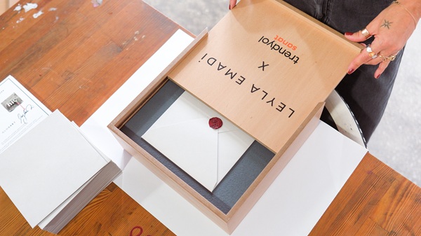 21 x 21 cm ölçülerinde beton plaka üzerine işlenmiş olan eser, sanatçının imzasını taşıyan orijinallik sertifikası ve özel kutusuyla birlikte 12 Eylül itibarıyla Trendyol Sanat’ta.