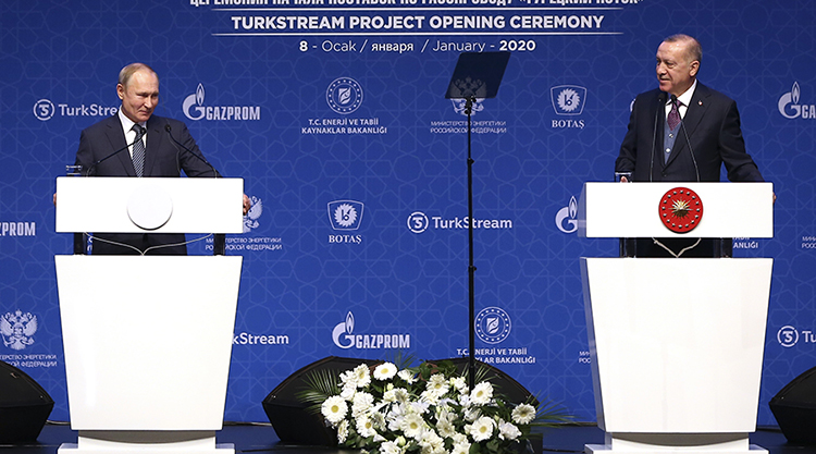 Erdoğan, Rus doğal gazını Türkiye'ye ve Türkiye üzerinden Avrupa'ya nakledecek TürkAkım doğal gaz boru hattının açılışı dolayısıyla düzenlenen törenin ardından Rusya lideri Putin ile yeniden bir araya geldi.