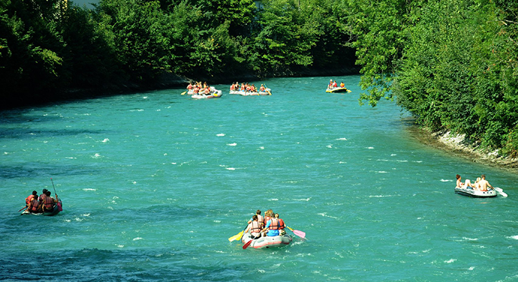 Kimisi lastik şişme botlarıyla, kimisi yüzerek kendisini nehrin akıntısına bırakıyor. Yaklaşık dört ile beş kilometre arasında bu şekilde akıntı ile birlikte süzülüp sonra tekrar nehir kenarından karaya çıkıyorlar. Ne yazık ki mayolarımız yanımızda değil yoksa bu keyifli aktiviteye eşlik etmek ne güzel olurdu.