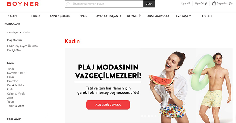 Türkiye'nin önemli e-ticaret sitelerinden biri olan boyner.com.tr'nin, 2019 yılının ilk yarısını bir önceki senenin aynı dönemine göre yüzde 50, cirosu ise yüzde 90 seviyesinde arttı. Ocak – Haziran 2019 döneminde boyner.com.tr, 72 milyon ziyaretçi ağırladı. Boyner'in internet mağazasında online alışverişin en çok yapıldığı şehir İstanbul olurken, en çok satış mayıs ayında kaydedildi, internetten alınan en popüler ürün ise "spor ayakkabı" oldu. Online alışveriş trafiğinin en yüksek olduğu günler pazartesi ve cuma olarak dikkat çekerken, kullanıcıların ziyaretlerinin akşam saatlerinde 21:00 – 23:00 arasına, gündüz saatlerinde ise 13:00 – 16:00 arasına yoğunlaştığı görüldü.