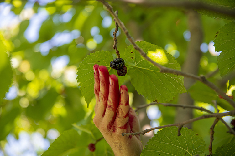 Yıllık yaklaşık 800 kilogram karadut yetişen Şebinkarahisar'da aileler, meyveyi ağaçlardan büyük bir özenle tek tek elleriyle hasat ediyor. Renklenen ellerden sepetlere konulan karadut, kazanlara dökülüyor.