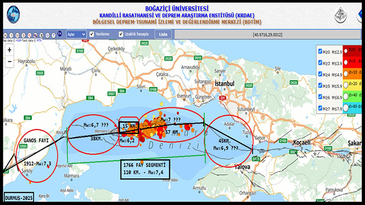 23 Nisan 2025 tarihinde, saatler 12-49'u gösterdiğinde, Marmara Ereğlisi'nin güney doğusunda, yerin 13 km. altında, doğu batı yönlü, doğrultu atımlı 15 km. uzunluğunda bir fay kırıldı.