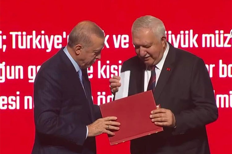 Beştepe Millet Kongre ve Kültür Merkezi’nde düzenlenen Kültür ve Turizm Bakanlığı Özel Ödülü ve Yaşayan İnsan Hazineleri Ödül Töreni’nde Cumhurbaşkanı Recep Tayyip Erdoğan ile bir araya gelen EMİB Başkanı İbrahim Alimoğlu, yönetmelik değişikliği sonrasında maden sektöründe oluşan kaygıları dile getiren bir yazıyı sundu.