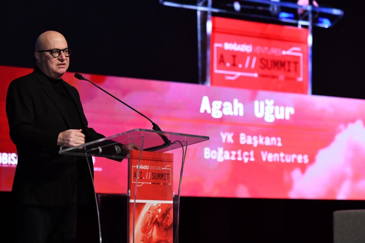Boğaziçi Ventures Yönetim Kurulu Başkanı Agah Uğur ise zirve katılımcılarına teşekkür ederek başladığı konuşmasında “Yapay zeka tanımı bugün dünyada en çok konuşulan 3-5 kelimeden biridir. İnsanlığın geleceğini trajedik bir şekilde değiştirecek tek şey. Hızla bir tusunami geliyor ve tahminlerde bulunmak çok zor. 2020 yılında yapay zekanın insan beyni gibi düşünebilecek seviyeye gelmesi için 2100 yılı öngörülüyordu. Bugün ise bu tarih 2030’a çekildi. Hatta daha da öne çekileceğini düşünüyorum. Bugün İnsanlığa yönelik getirdiği artıları konuşacağız. Etik kısmını konuşacağız. Olağan üstü dönüştürücü teknoloji kısmını değerlendireceğiz” dedi.