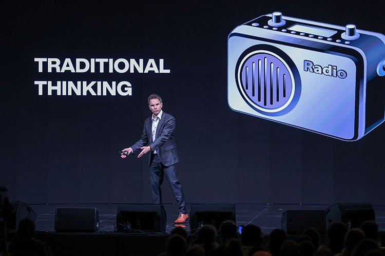 “Hiç aklınıza çılgınca ama imkânsız gibi gelen bir fikir geldi mi? Mesela zaman makinesiyle geçmişe gidip Coldplay konserine ön sıralardan bilet aldığınızı düşünün. Ya da çamaşır yıkarken kaybolan çorabınızı bulan bir uygulama… Ben de bir gün şöyle düşündüm: Duyduğum bir şarkının adını bana telefonum söylese harika olmaz mı? Şimdi eğitimde büyük bir yeni fikriniz olduğunu düşünelim. Bunu bir realiteye dönüştürmeye çalışırken birçok engelle, birçok problemle karşılaşacaksınızdır. Ve biz sıklıkla engeli görürüz ve bu çözülemez, yapılamaz diye düşünürüz. Ama o engeli aşmak için sizin yaratıcı düşünmeniz gerekir.”