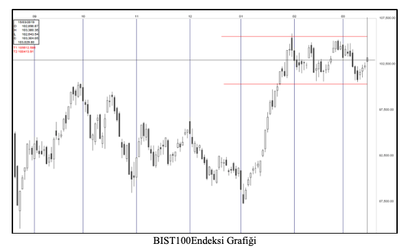 Piyasalardaki son duruma bakacak olursak; sokaktaki vatandaş ve piyasalar seçim ekonomisine girmiş durumda. Herkes seçimden sonraki süreci merak ediyor ve piyasada ağırlıklı olarak bekle gör mantalitesi hâkim. Endeks Şubat ayı başından beridir yaklaşık 100bin ile 105 bin bandı arasında gidip geldiği seçim ekonomisi trendine uyarak dar koridordaki yatay seyrini korumaya devam ediyor.